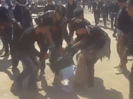 Ngay sau đó, ba thanh niên trẻ đã ngay lập tức khiêng cô gái mặc cho người này cố gắng vũng vẫy, gào khóc thoát ra. Một số người phía sau cố gắng lao lên ngăn cản nhưng đã bị gạt ra ngoài.