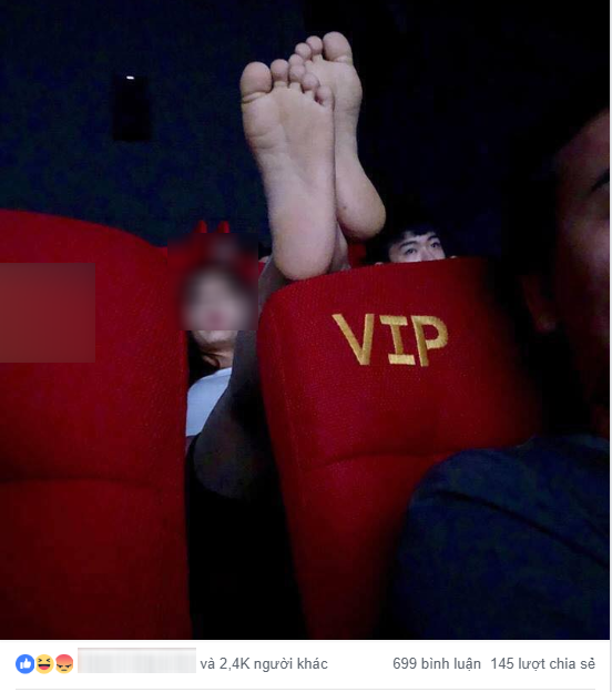 Một bức ảnh gác chân trong rạp chiếu phim tương tự từng khiến dân mạng chỉ trích kịch liệt.