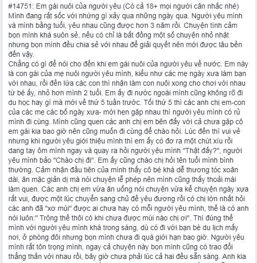 Trên một trang tâm sự nổi tiếng, cô gái chia sẻ câu chuyện vừa xảy ra của mình trong tâm trạng chưa hết hoảng loạn. Cô và người yêu đã yêu nhau được 3 năm. Chuyện tình vẫn có những bất đồng nhỏ nhưng nhìn chung vẫn êm đềm và suôn sẻ.