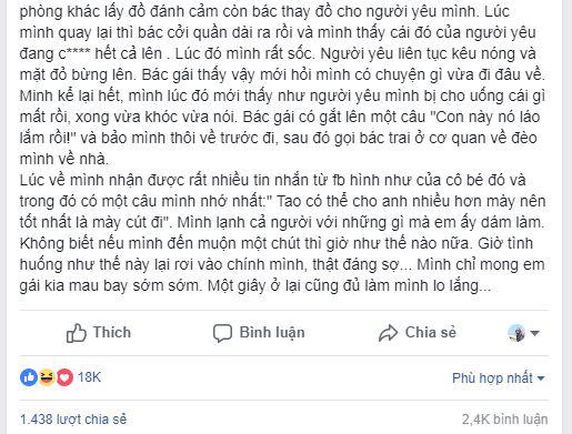 Chưa biết thực hư câu chuyện ra sao nhưng bài viết vẫn thu hút lượng lớn cư dân mạng tương tác với hơn 18.000 lượt thích, gần 1.500 lượt chia sẻ và hơn 2.400 bình luận.