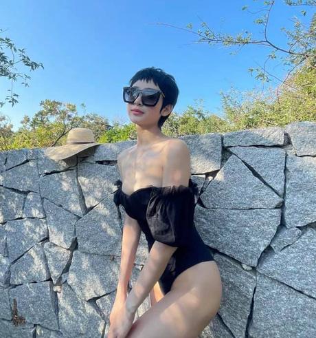 Hiền Hồ tích cực diện những thiết kế gợi cảm như bodysuit, bikini, monokini... để khoe vóc dáng.
