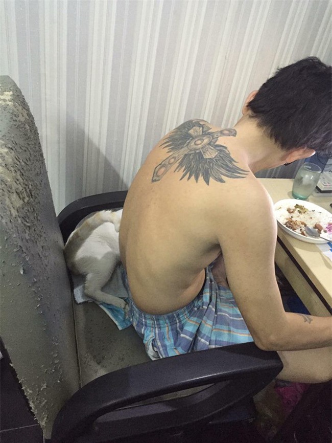 "Đây là người đàn ông mà cách đây 3 năm luôn cương quyết không nuôi mèo, còn mắng té tát khi mình bắt đầu nhặt mèo ngoài đường về chăm rồi tìm chủ cho nó. Nhặt con mèo này về chăm sóc ban đầu mình tính tìm chủ mới thì ba nhất quyết giữ lại nuôi.
