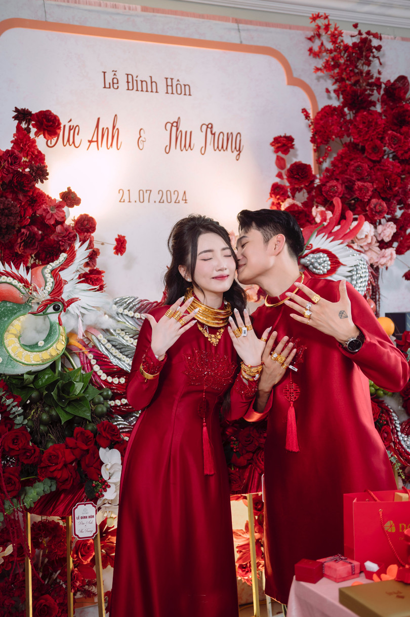 Đám cưới của cặp đôi diễn ra suôn sẻ với nhiều khoảnh khắc đáng nhớ. Ấn tượng nhất là cảnh cô dâu đeo vàng trĩu cổ, cũng là những món quà quý giá hai bên gia đình trao tặng cho đôi vợ chồng trẻ.