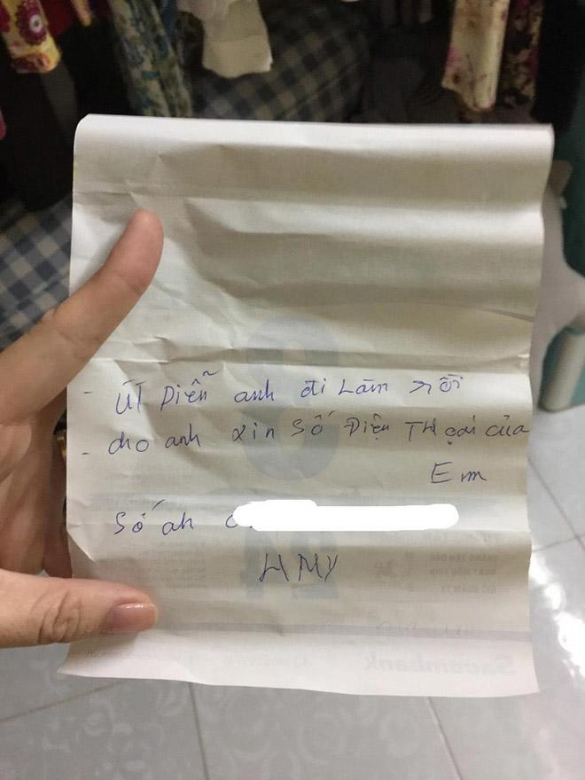 Mảnh giấy cô gái phát hiện ở khe cửa phòng trọ.