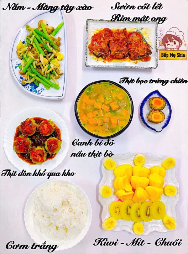 Dù phải chờ đợi lâu nhưng món ăn ngon miệng, bày biện đẹp mắt khiến chồng ngày càng mê đồ Thu Sương nấu và chỉ thích ăn cơm nhà. Chị em cùng tham khảo mâm cơm gia đình dưới đây do vợ đảm Thu Sương thực hiện.