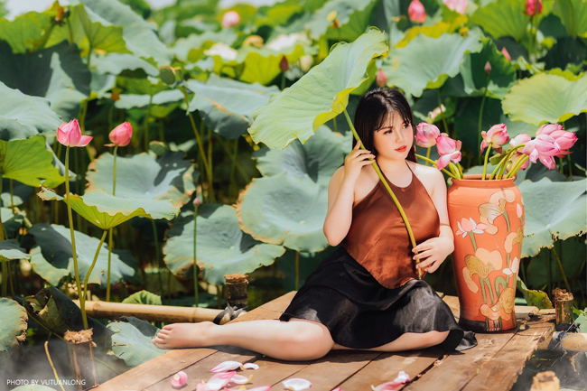 Thu Trang luôn ao ước có bộ ảnh diện áo yếm, chụp ảnh bên sen.