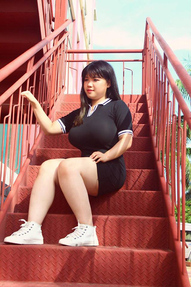 Bất chấp vòng một quá khổ, cô gái 18 tuổi vẫn tự tin mặc áo yếm khoe sắc bên sen.