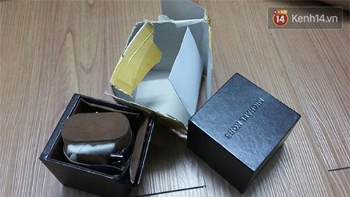 Hộp đựng đồng hồ mà chị H.M gửi đi đã bị tác động làm cho rách, nát. |
