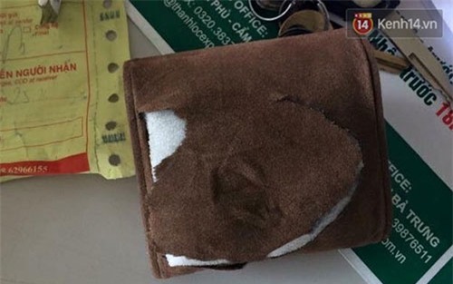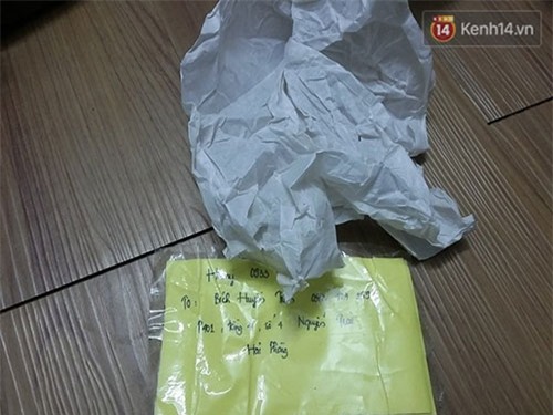 Bao bì gửi đi vẫn đúng là chữ viết tay của chị Hà nhưng xuất hiện nhiều vết rách và vệt băng dính mới. |
