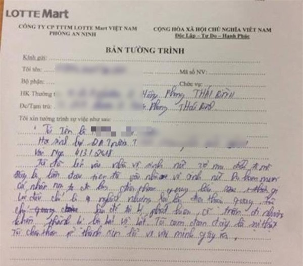 Ghi nhận của PV vào trưa cùng ngày, tại Công an phường Ngã Tư Sở, phía anh ninh và quản lý của siêu thị Lotte đã được mời đến.