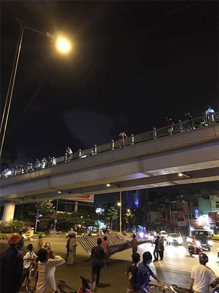 Theo nhiều người chứng kiến cho biết, cô gái này đi lên giữa cầu vượt Nguyễn Tri Phương (đường 3/2, TP. HCM) rồi treo ra ngoài lan can cầu đứng lơ lửng trước sự ngỡ ngàng của nhiều người. Dưới chân cầu, lực lượng chức năng có mặt và sử dụng các thiết bị bảo hộ phòng cô gái nhảy xuống đất.