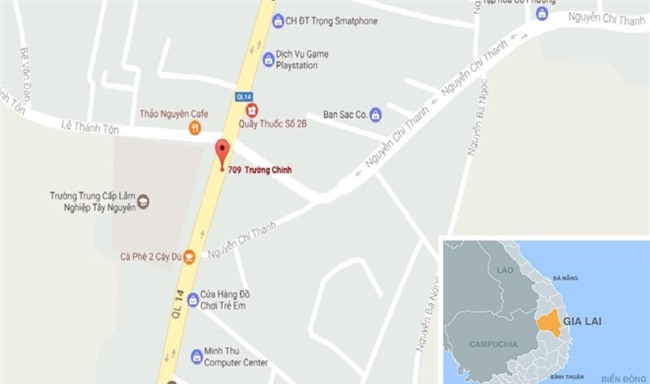Vụ tai nạn xảy ra tại số nhà 709 đường Trường Chinh, TP Pleiku. Ảnh: Thiên Sơn. |