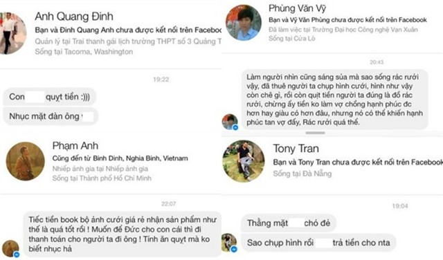Nạn nhân của vụ việc là chị Nguyễn Huyền Tr. (cũng ngụ tại TP Vinh, Nghệ An) cho biết: Sáng ngày 11/12, vừa mở trang facebook cá nhân với nick name Tr. Bống, chị Tr. quá bất ngờ khi nhận được hàng nghìn lời mời kết bạn, lượt theo dõi. Hơn nữa, còn có hàng trăm tin nhắn đổ về với cùng một nội dung khẳng định, chị Tr. là cô gái bị đánh ghen giữa phố, kèm theo đó là những lời chửi bới thô tục, kết tội chị Tr. là kẻ phá hoại hạnh phúc gia đình người khác…