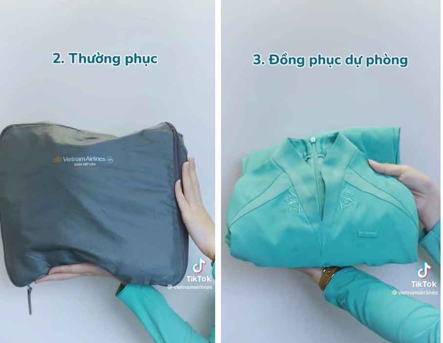 Theo đó, trong chiếc vali xách tay của các tiếp viên nữ sẽ bao gồm túi mỹ phẩm và bộ vệ sinh cá nhân, thường phục, đồng phục dự phòng. Tất cả sẽ được sắp xếp vào những túi riêng để đảm bảo sự gọn nhẹ, tiện dụng. Những món đồ này sẽ giúp tiếp viên hàng không nữ có diện mạo chỉn chu, lịch sự trước khách hàng.