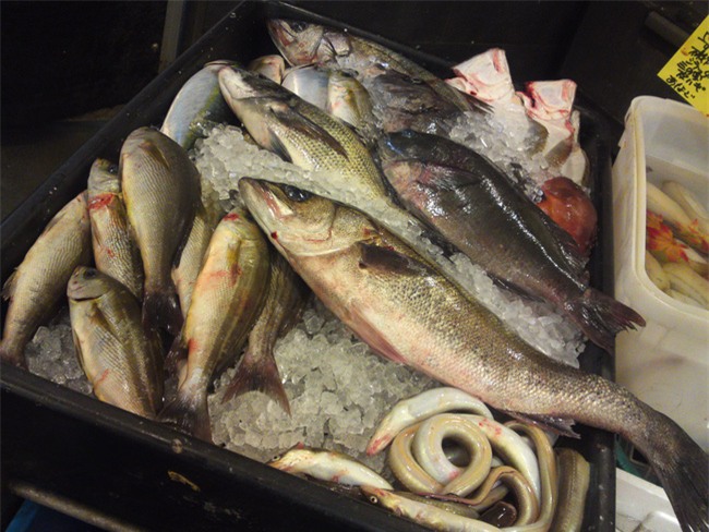 Cá mú răng dài, mực bầu dục từ Nagasaki.