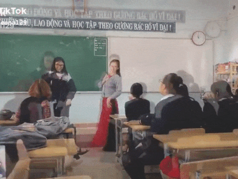 Dân tình thi nhau bàn tán vì thích thú. Nhiều người cho rằng chỉ cần cô mặc thêm long bào thì cả lớp sẽ hô 'cô giáo vạn tuế, vạn vạn tuế'.