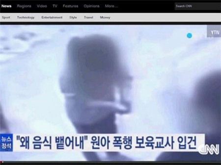 Đoạn băng thu được từ máy quay của trung tâm nuôi dạy trẻ cách Seoul khoảng 1 giờ lái xe về phía Tây cho thấy một bé gái đã buộc phải ăn kimchi. Khi cô bé này ọe ra, người bảo mẫu đã vung tay đánh rất mạnh, khiến bé ngã văng xuống đất và không thể đứng dậy sau vài giây.