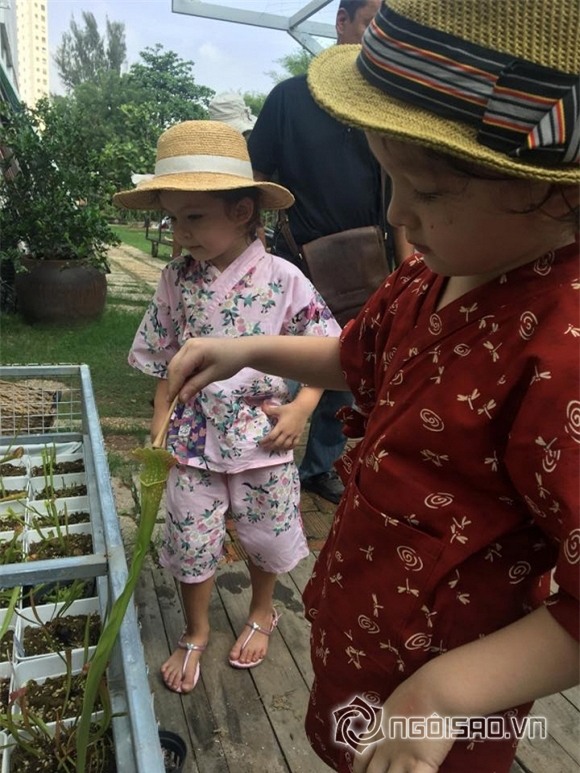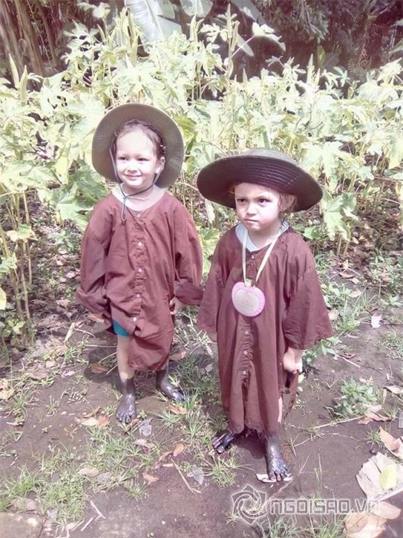 Những tưởng cặp song sinh nhà Hồng Nhung sẽ có cuộc sống như 'tiểu thư, công tử' nhưng sự thật thì hai bé được trải nghiệm nhiều công việc thậm chí là việc lấm bùn.