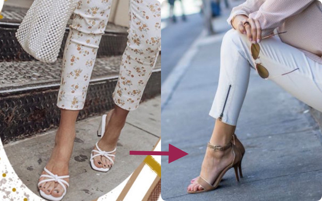 Sandal/giày dép màu trắng: Tương phản với màu của bàn chân, tối kị với nàng da ngăm đen hay da dễ bị bắt nắng