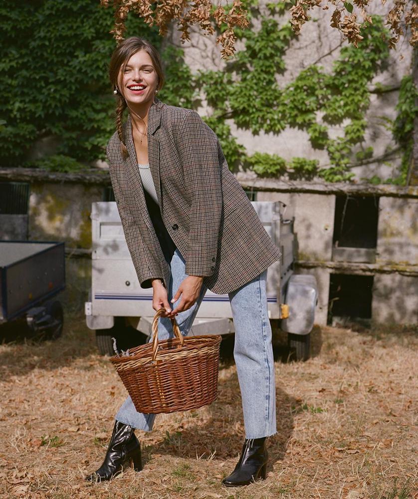 Ngoài những kiểu áo khoác trơn một màu trung tính, phụ nữ Pháp cũng rất trọng dụng áo dáng oversized, phủ họa tiết kẻ ô. Item này toát lên vẻ thanh lịch và chuẩn mốt nhưng thú vị hơn, áo họa tiết kẻ ô sẽ tăng thêm nét trẻ trung, nổi bật cho người mặc.