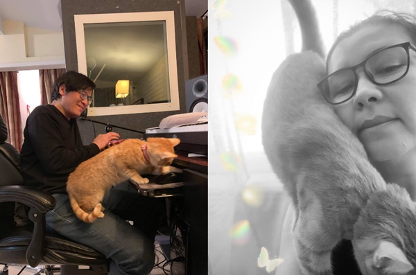 Vợ chồng nghệ sĩ bên mèo cưng.