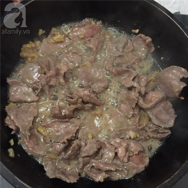 Khi thịt bò vừa chín tới thì trút ra đĩa.