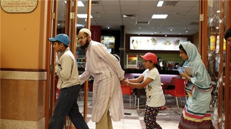 Một nhóm người rời khỏi khu mua sắm Westgate sau khi bọn khủng bố cho phép họ chạy ra ngoài vào hôm 21/9. Ảnh: Reuters. |