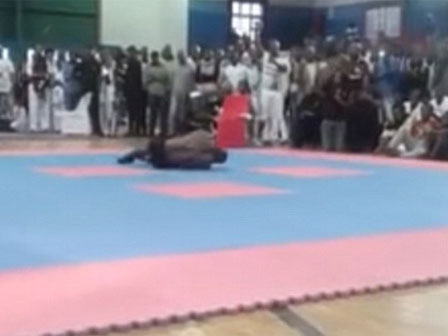 Tuy nhiên, màn biểu diễn đã kết thúc trong đau buồn khi nhà cựu vô địch gặp phải tai nạn khi búng mình lên không. Không kịp xoay người, anh Sifiso Lungelo Thabete bị ngã ra sân, gãy cổ và nằm bất động ngay trước mắt của đám đông khán giả.