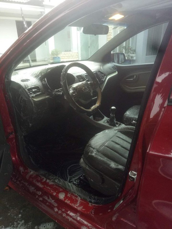 Cô này mở toang cửa ô tô, chà xà phòng vào vô lăng, cần số, thậm chí vào cả ghế ngồi và dưới sàn. Có lẽ cô vợ quan niệm rửa ô tô cũng như dọn dẹp nhà cửa, mọi ngóc ngách đều phải được kì cọ.