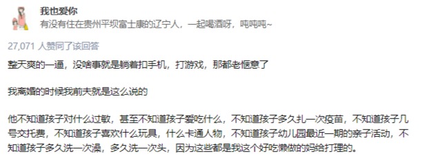 Trên diễn đàn Zhihu có một chủ đề: “Trong cái nhìn của đàn ông, họ cảm nhận thế nào về một người vợ ở nhà nội trợ, trông con?”. Để trả lời cho câu hỏi đó, một người phụ nữ đã kể lại câu chuyện hôn nhân của chính cô.