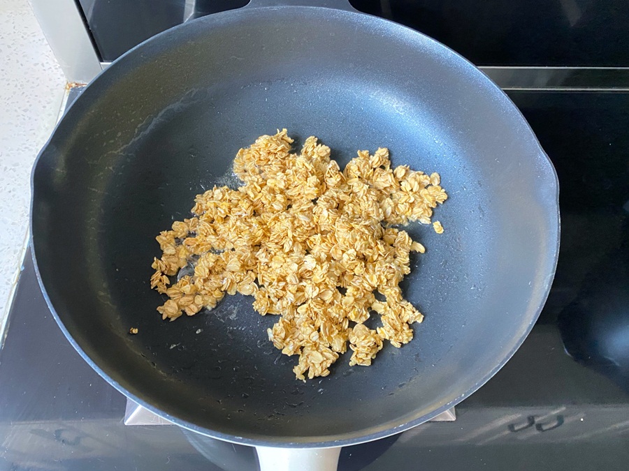 Chiên cho yến mạch chín rồi để sang một bên.