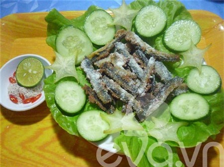 Bước 4: Bày ra đĩa nào, rắc bột muối lên đĩa chạch đang nóng giòn.