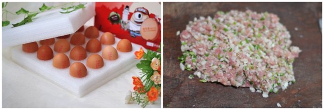 Bạn làm tương tự với phần thịt và trứng còn lại. Sau khi chiên xong cho trứng ra đĩa và cho vào nồi hấp, hấp cho đến khi thịt trong trứng chín là được.