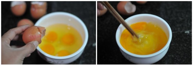 Đập trứng vào bát, thêm một ít muối rồi đánh tan trứng.