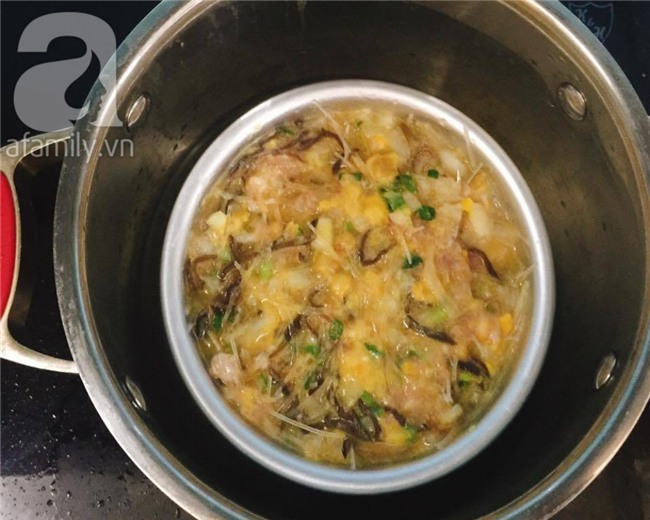 Hấp cách thủy 30 phút cho chín, thỉnh thoảng lấy tăm xiên khắp mặt. Khi rút tăm ra không ướt là trứng đã chín.
