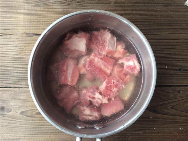 Cho sườn vào nồi đun sôi rồi rửa sạch lại sườn.