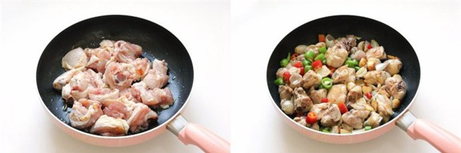 Khi tất cả dậy mùi thì ban cho gà vào, đảo cho đến khi gà săn lại.