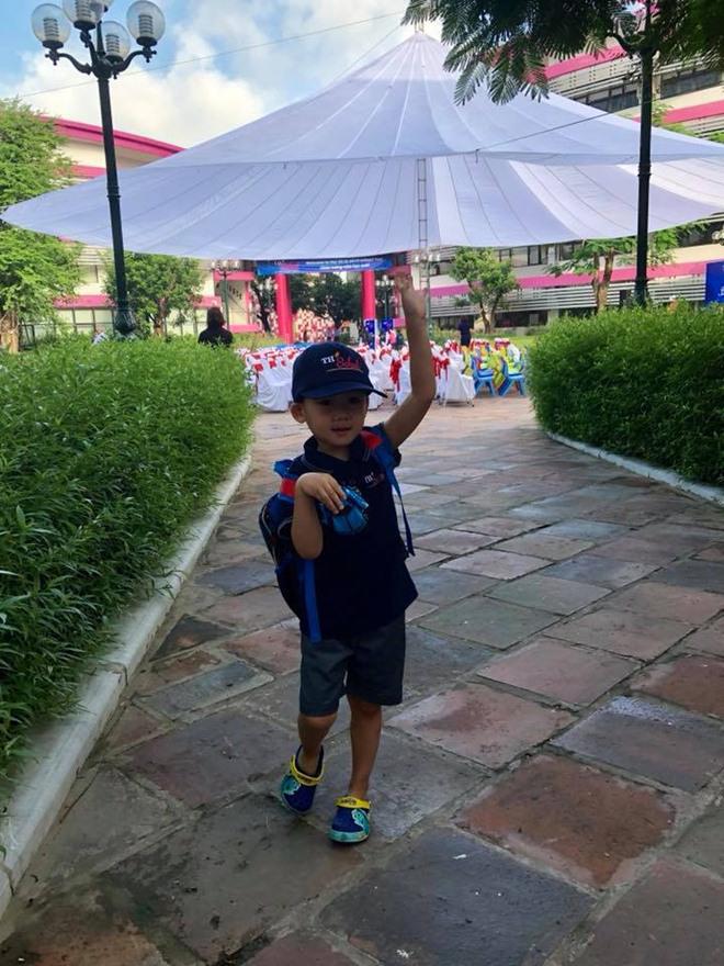 Con trai siêu mẫu Phạm Ngọc Thạch hoạt bát khi bắt đầu năm học.