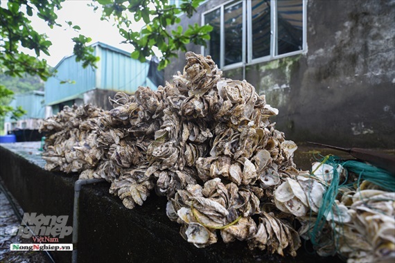 Giá thể làm chỗ bám cho hàu giống thường được tận dụng từ vỏ hàu trưởng thành sau khi khai thác ruột. Đây là sáng kiến không những giúp tận dụng nguồn vỏ thải có sẵn, giá rẻ mà còn bảo vệ môi trường, giảm chi phí tiêu hủy vỏ sò sau khi khai thác. Ảnh: Tùng Đinh.