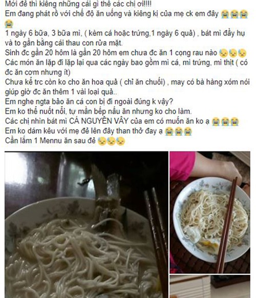 20 ngày sau sinh chỉ được ăn mỗi mì với cá và trứng, bà mẹ trẻ ngán ngẩm lên cầu cứu cư dân mạng gợi ý thực đơn ăn cữ.