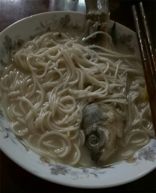 Món mì nấu với cá nguyên vẩy R.P. phải ăn khiến ai nhìn cũng ngán ngẩm.