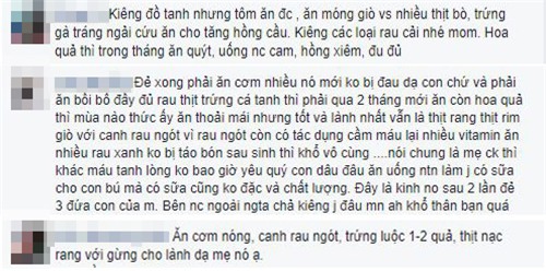 Một bà mẹ bình luận: "Sao lại ăn cá như vậy nhỉ? Ăn cá sớm là bị sản, không tốt cho cả mẹ cả con. Đồ tanh ăn vào mà cho con bú thì con rất dễ bị đường ruột".