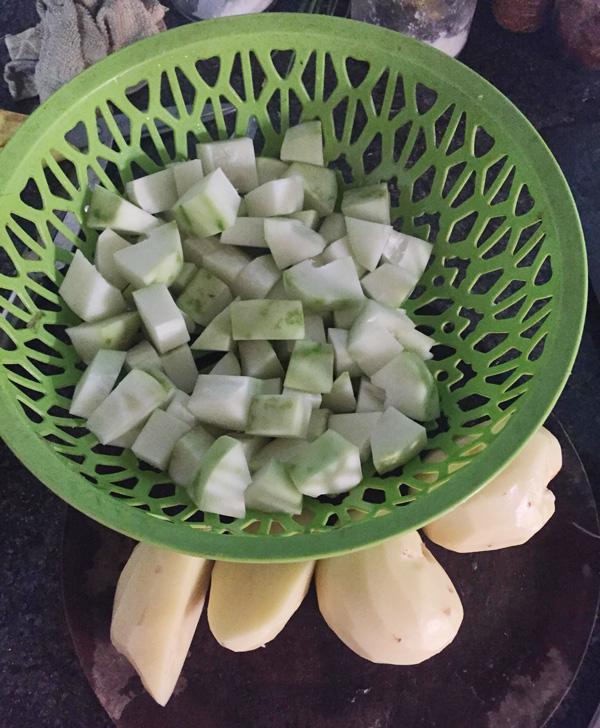 Trước đó, mẹ chồng Q. còn mua cả mướp đắng và rau ngót.