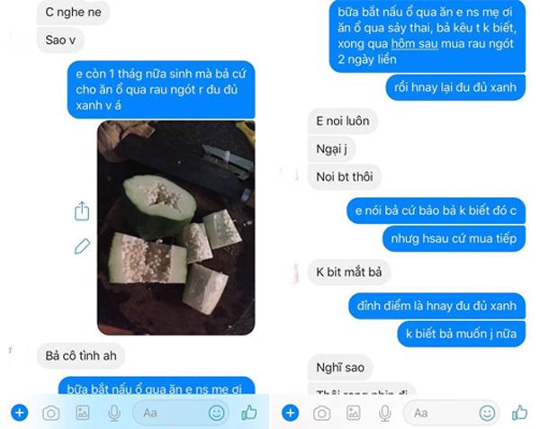 Không chỉ có thế, Q. cho biết trước đó mẹ chồng còn mua mướp đắng về ăn. Khi cô nói rằng ăn mướp đắng dễ sảy thai thì bà liền mua rau ngót để về ăn 2 ngày liền khiến cô rất hoang mang.