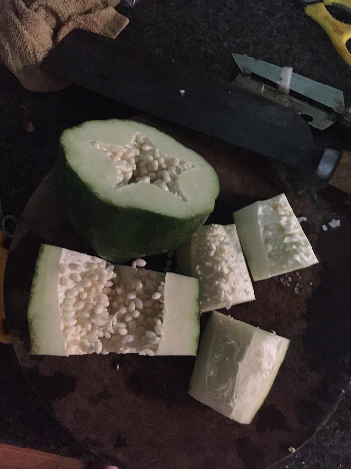 Kèm theo những chia sẻ này là hình ảnh quả đu đủ xanh mà mẹ chồng Q. mua về cho bữa cơm hàng ngày của gia đình.