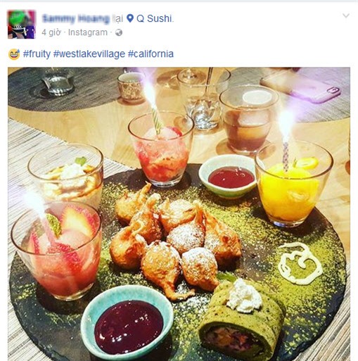 Trong khi chồng Lan Phương, Sammy Hoàng cũng đăng toàn ảnh các món ăn, đồ uống và một ảnh ngồi bên hot boy giấu mặt.