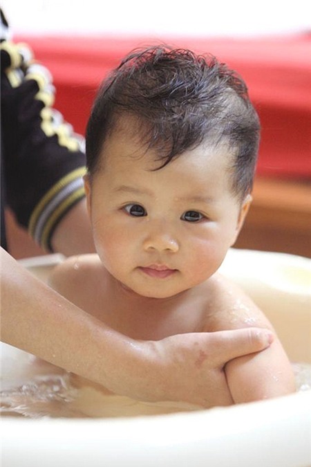 "Bào Ngư nhà mình bướng từ nhỏ, trán dô lắm. Tính tình con hơi đanh đá, thỉnh thoảng cáu lên là hay đánh mọi người hoặc ném đồ đạc. Những lúc như vậy mình thường nghiêm mặt để con biết rằng hành động đó là không đúng, sau đó bảo con xin lỗi mọi người", Mi Vân chia sẻ cách dạy con.