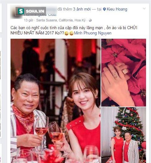 Rạng sáng 19/12, chị Đào Lan Phương - con dâu tỷ phú Hoàng Kiều - đăng tải những khoảnh khắc hạnh phúc của cặp đôi đũa lệch. Trong loạt ảnh, hai người mặc đồ đôi, cùng cụng ly và đeo nhẫn ở ngón áp út. Con dâu doanh nhân nổi tiếng đưa ra lời bình luận đầu tiên kể từ khi cha chồng cùng Ngọc Trinh bên nhau.