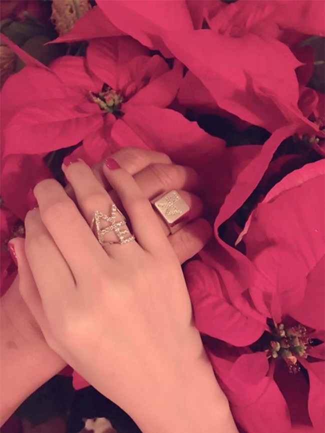 Ngọc Trinh và tỷ phú 72 tuổi cùng đeo nhẫn ở ngón áp út. Ảnh: FB.