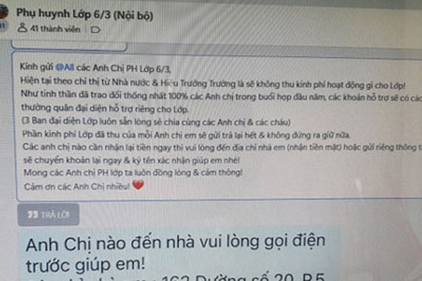 Đọc những dòng tin này, chị Huyền (quận Bình Thạnh, TPHCM) chỉ biết thở dài. Là người đi làm công ăn lương, chị hiểu cảm giác của những cha mẹ phải lo toan đủ thứ từ tiền nhà, tiền ăn, tiền điện, tiền khám bệnh... rồi hàng tháng phải đóng học cho con. Nay lại thêm tiền quỹ lớp khiến không ít gia đình đau đầu.